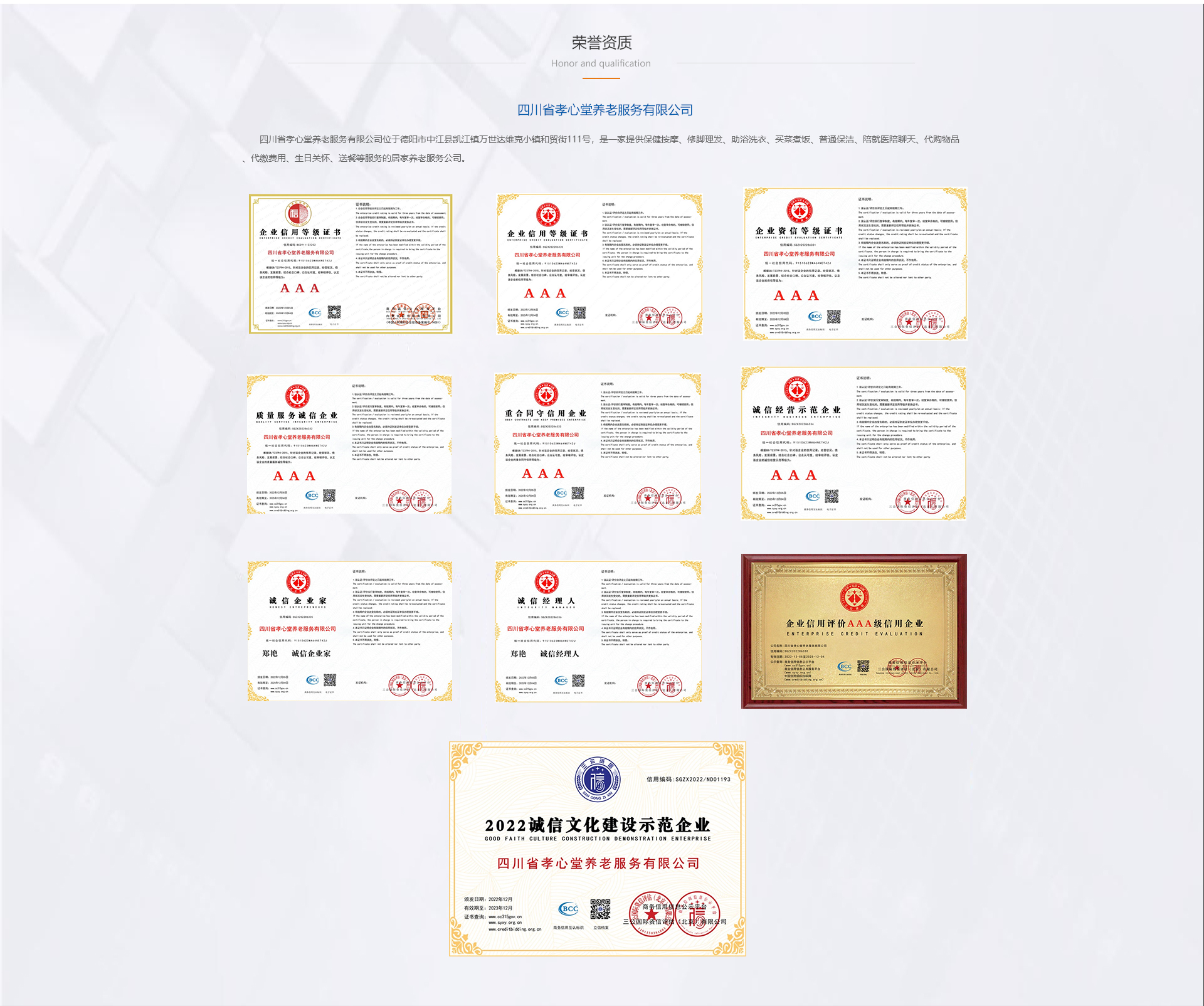 四川省孝心堂养老服务有限公司位于德阳市中江县凯江镇万世达维克小镇和贸街111号,是一家提供保健按摩、修脚理发、助浴洗衣、买菜煮饭、普通保洁、陪就医陪聊天、代购物品、代缴费用、生日关怀、送餐等服务的居家养老服务公司。公司以“把温暖送给父母,让亲情陪伴老人”的经营理念,始终保持细心、耐心、用心、贴心的服务态度,让老人能在家里舒适无忧的养老!
